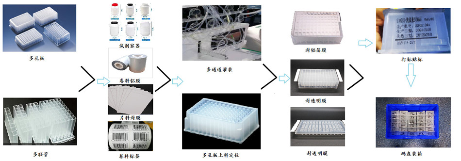 此類設(shè)備可實現(xiàn)多孔板自動儲料—>自動供料>自動吸塵>自動定位>自動灌裝>自動封膜>自動打標(biāo)貼標(biāo)>CCD檢測封膜及貼標(biāo)效果—>自動計數(shù)出料緩存等一系列動作,使該類產(chǎn)品的灌裝封膜貼標(biāo)工序?qū)崿F(xiàn)自動化,提升產(chǎn)能及品質(zhì),節(jié)省人工。