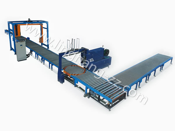 第四步:封好箱后自動打包,至此本流水線包裝操作完成。如在第一步與第二步間加入產(chǎn)品自動裝箱,屆時本包裝流水線將可以完全實現(xiàn)無人全自動從開箱到打包好。