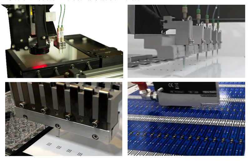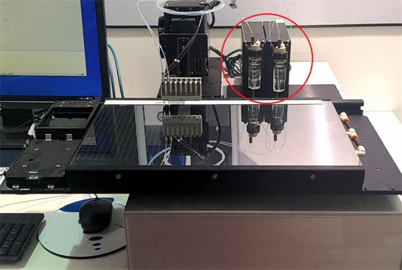 1平臺可根據(jù)需要配置多種噴頭,適合用于金標試劑、封閉液、預處理液等的分散定量噴點,噴頭由高精度步進泵供給溶液。